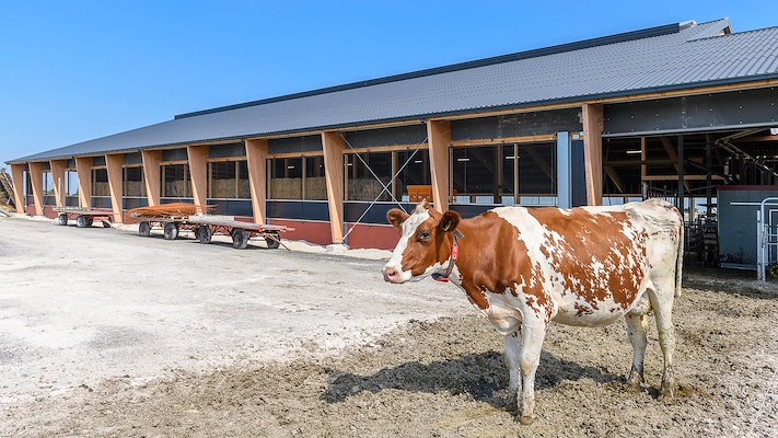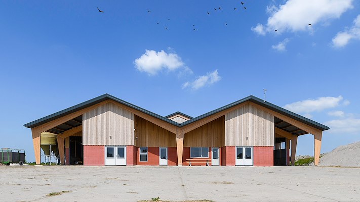 De reeds gerealiseerde melkveestal laat goed zien hoe de regionale traditie op eigentijdse wijze kan worden vertaald. Kenmerkend zijn de steile kappen en rode kleur die refereren aan de traditionele Groninger boerderij. Dat de constructie – in tegenstelling tot wat gangbaar is – geheel uitgevoerd is in hout, is te danken aan de ambitie van de opdrachtgever om zijn bedrijf te verduurzamen.