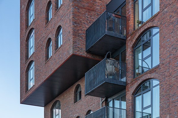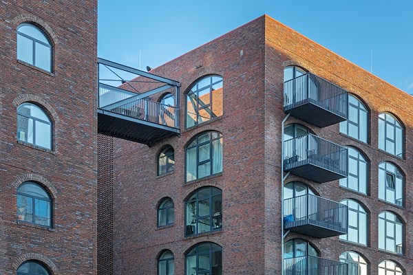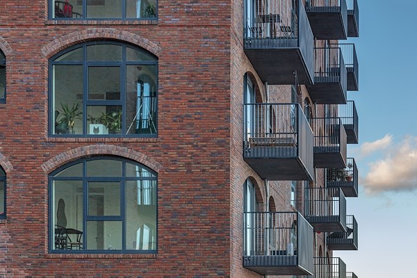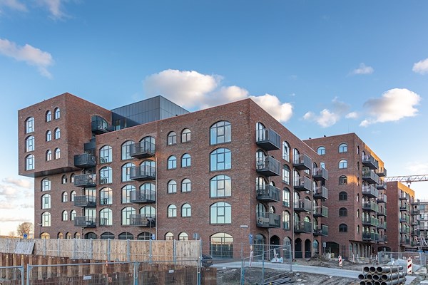 De architectuur van het project sluit aan op het industriële verleden van de locatie en verwijst in schaal, ritmiek en detaillering naar de voormalige pakhuizen in het gebied.
