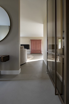 De keuze voor de kleur Fossil geeft de woning een tijdloze uitstraling die de balans houdt tussen warmte en een modern karakter. Het materiaal fungeert als een rustig, doorlopend canvas dat de architectuur van de woning ondersteunt zonder de aandacht op te eisen. De vloer vormt de verbindende factor; een serene basis die zorgt voor een vloeiende overgang tussen de diverse functies van het huis.