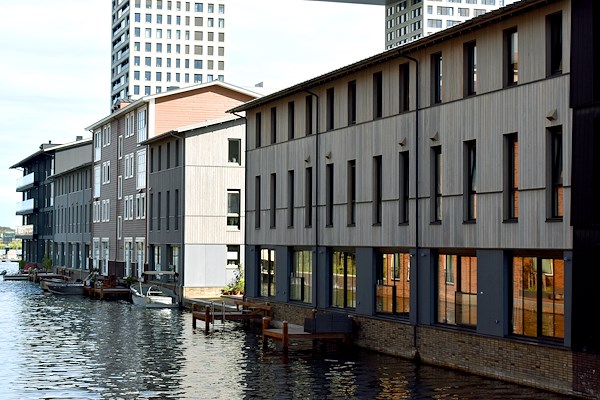 Voor de gevels van de woningen is 1.950 m² Fraké Noir gevelbekleding in model C toegepast, behandeld met Flame Delay PT en voorvergrijzer VD-02. Het FSC®-gecertificeerde, biobased Fraké Noir draagt bij aan een duurzame en toekomstbestendige bouwoplossing. De warme, natuurlijke tinten van het hout sluiten naadloos aan bij de sfeer van de Houthaven, waar vakmanschap en historie samenkomen.