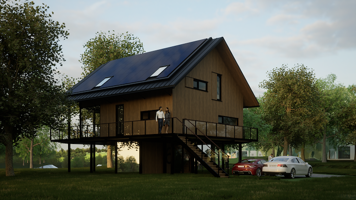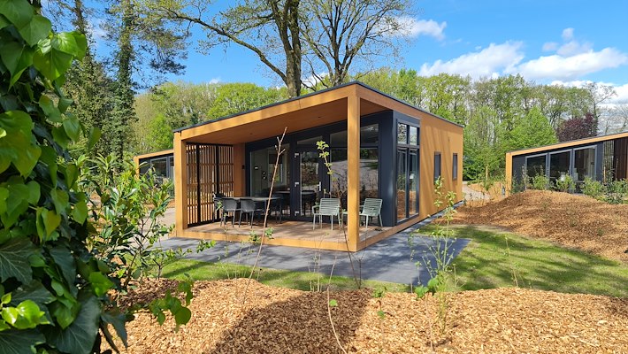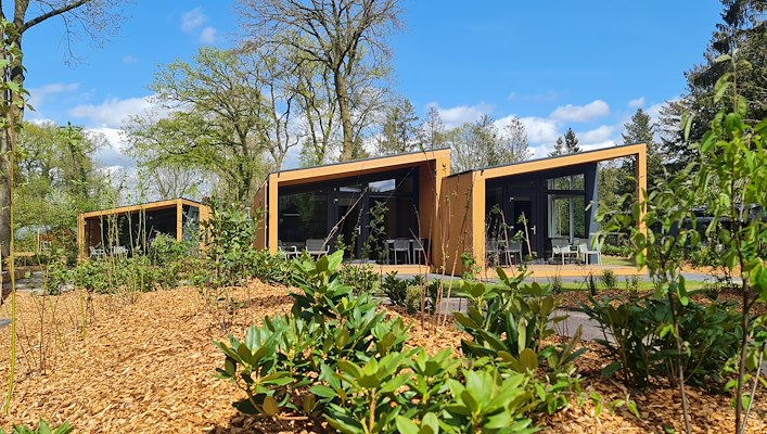 Ook de chalets dragen bij aan de duurzame opzet van het park. Alle chaletdaken bestaan volledig uit zonnepanelen. Daarmee zijn deze woningen niet alleen energieneutraal maar energiepositief. Wanneer de batterijen in de chalets vol zijn, wordt de extra energie opgeslagen in een centrale batterij. Die levert vervolgens stroom aan de andere woningen zonder panelen. Ook dit energiesysteem is door Buro De Haan ontworpen.