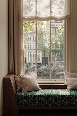 De beleving van het huis wordt gekenmerkt door een duidelijke tweedeling. Aan de voorzijde staat de levendigheid van de stad centraal, met grote ramen die uitzicht bieden over de grachten en zorgen voor een overvloed aan daglicht. Aan de achterzijde heerst juist rust, met zicht op een ruime, beschutte stadstuin. De aangrenzende vertrekken hebben een intiem en kalm karakter en vormen een plek voor ontspanning en reflectie.