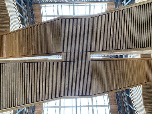 Voor dit project leverde WEBO 2.400 eiken kozijnen en balustrades. Het toegepaste