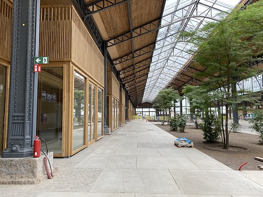 Bij de renovatie is nadrukkelijk ingezet op hergebruik van bestaande en gerecyclede materialen. Onderdelen uit de oorspronkelijke constructie zijn opnieuw toegepast en ook de historische stalen kolommen zijn behouden gebleven. Daarmee is het industriële verleden van Gare Maritime zichtbaar geïntegreerd in de nieuwe invulling van het gebouw.