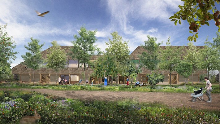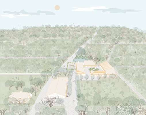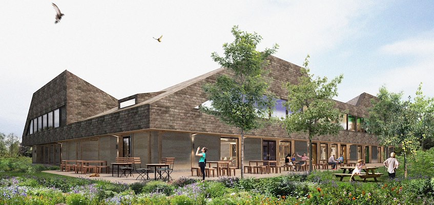 Aan de rand van de Loonse en Drunense Duinen, waar heidevelden, bossen en zandvlaktes elkaar afwisselen, groeit nu een nieuw ecosysteem. Graslanden maken plaats voor jonge fruit- en notenbomen, bessenstruiken, wortelgewassen en kruiden. In de komende jaren ontpopt dit terrein zich tot een voedselbos van 20 hectare. Midden in dat landschap – op een plek waar jarenlang een intensieve veehouderij stond – komt een nieuw gebouw: de