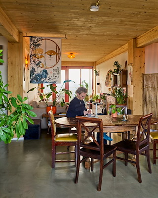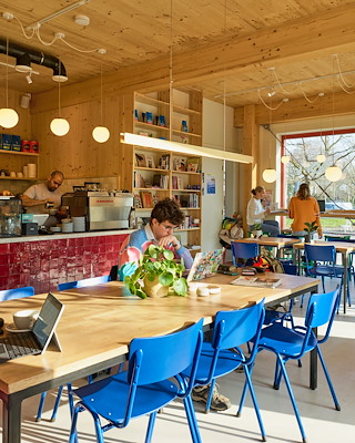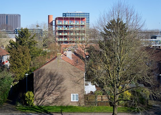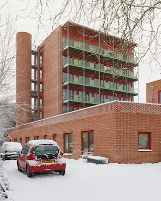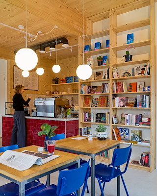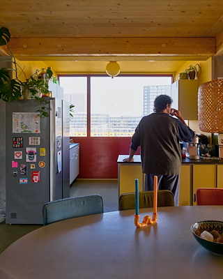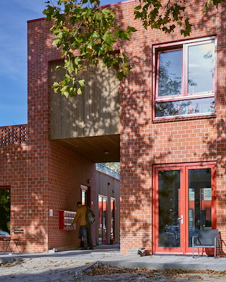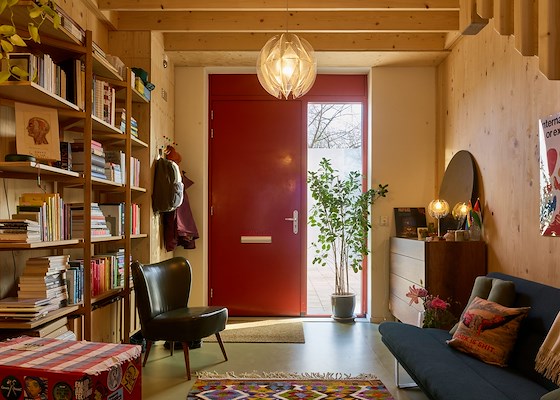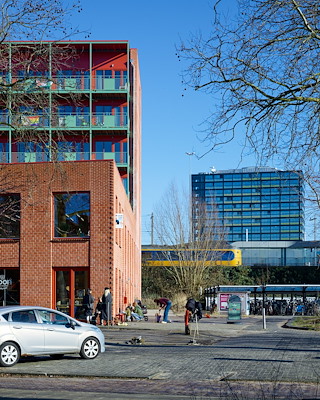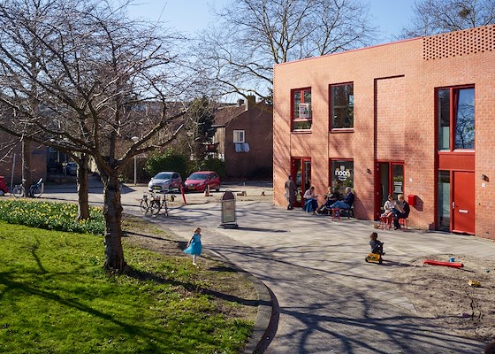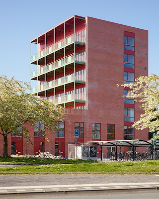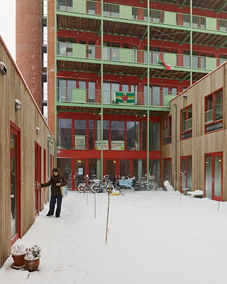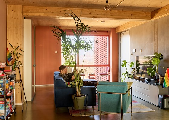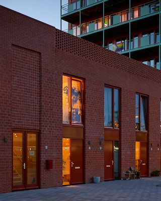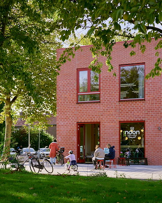 Bij koffietent en boekenwinkel Noon op de hoek kunnen inwoners en de buurt terecht voor een goede cappuccino en evenementen, zoals filmavonden en buurtbijeenkomsten. Al deze aspecten zijn gezamenlijk besloten met alle leden van de wooncoöperatie aan de hand van een hecht en intensief participatieproces. Het resultaat is een levendig en kleurrijk gebouw, met felrode kozijnen en opvallend gekleurde bakstenen, en minstens zo energieke, betrokken bewoners die zich hard maken voor een gezamenlijke, duurzame en warme plek in de stad.
