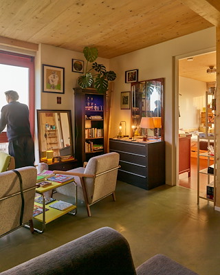 Op de begane grond en eerste etage bevinden zich de zelfstandige (gezins)woningen en de gedeelde woonkamer voor het hele gebouw. De vijf verdiepingen erboven, te herkennen aan de mintgroene balkons, bestaan ieder uit een zelfgevormde woongroep, die samen om tafel heeft getekend aan hun specifieke plattegrond en mate van delen.