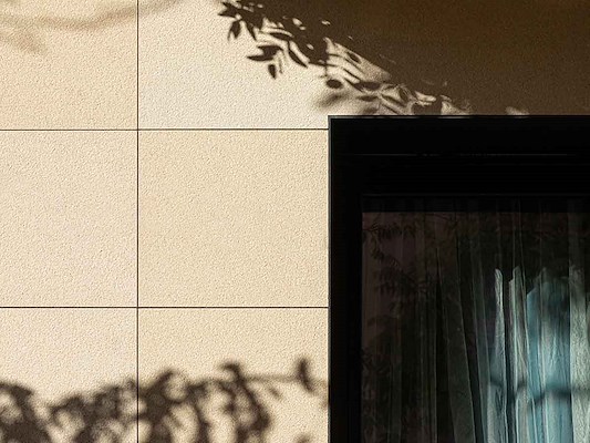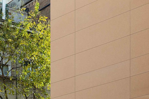 , wat bijdraagt aan de bouwfysische prestaties en de levensduur van het gebouw. In een stedelijke omgeving met een relatief hoge luchtvochtigheid en maritieme invloeden biedt deze opbouw bescherming tegen vocht en zoute belasting. De toegepaste panelen kenmerken zich door een zeer lage waterabsorptie (0,1%) en een samenstelling die grotendeels uit natuurlijke componenten bestaat.