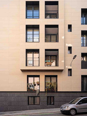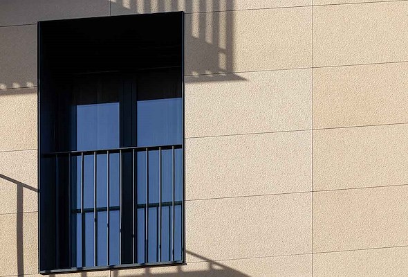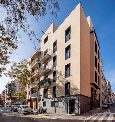 Barcelona kent een lichtkwaliteit die de expressie van materialen en volumes versterkt. In de wijk Horta-Guinardó is een woongebouw gerenoveerd met de toepassing van een nieuwe PURE textuur van