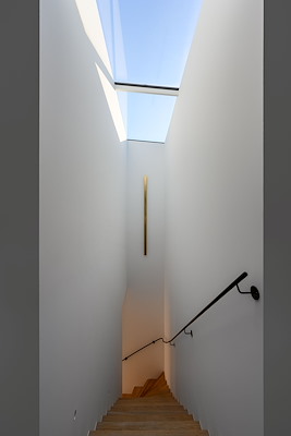 Door het spel tussen open en gesloten, krijgt deze villa haar unieke karakter. Het gebouw voegt zich harmonieus in de omgeving en voelt tegelijk luchtig en uitnodigend.