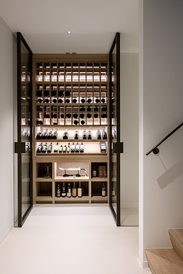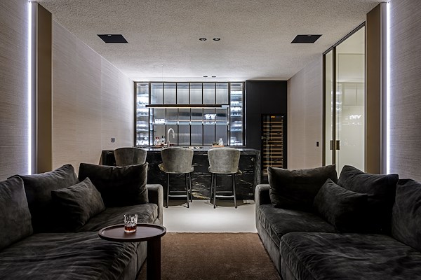 Onder de woning ligt een ruime extra woonlaag die kwaliteit toevoegt aan de villa. Deze verdieping biedt ruimte voor uiteenlopende functies zoals een sportstudio en een thuisbioscoop. Dankzij de slimme indeling voelt het souterrain als een natuurlijk verlengstuk van het bovenliggende woonprogramma, zonder dat de villa in omvang te grootschalig aanvoelt vanaf de straat.