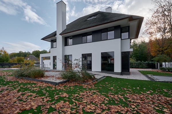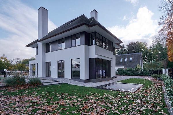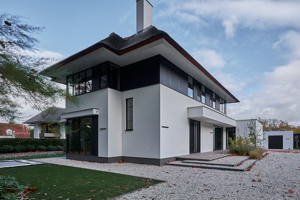 Nieuwbouw witte villa met rieten kap in Eindhoven