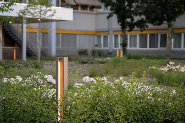 BoschSlabbers heeft het ontwerp van de buitenruimte van het Amphia Ziekenhuis van het eerste schetsontwerp tot aan de details zoals straatverbanden en maatwerk paaltjes vormgegeven. Bijzonder aan het ontwerp van de afzet- en verlichtingspaaltjes is de kruisvorm, die geïnspireerd is op het ziekenhuiskruis. In de verlichtingspalen zijn vier sleuven aangebracht: drie met sfeerverlichting en een sleuf met strooilicht dat gericht is op het voetpad. ‘s Avonds en in de donkere wintermaandenis de buitenruimte hierdoor sfeervol verlicht. Daarnaast kunnen bij 5 palen kunnen e-bikes worden opgeladen.