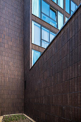 Om het gewicht nog verder terug te brengen, was het idee om de bakstenen te verzagen en ze als steenstrips op de AQUAPANEL® Cementboard Outdoor aan te brengen. Zo zou het gebouw toch het uiterlijk kunnen krijgen zoals ZZDP Architecten dat had bedacht. Vooral dat sommige steenstrips op de kopse kant verlijmd moesten worden, maakte het spannend. Het lijmoppervlak zou daar maar 38 mm bedragen. Op basis van testrapporten kon Knauf echter groen licht en een positief advies geven. De testrapporten en het advies gaven vervolgens Stichting Gevelgarantie voldoende vertrouwen om het systeem in verzekerde garantie te nemen.