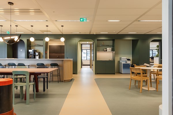 De keuze voor Marmoleum werd ingegeven door design en duurzaamheid. Het is een klimaatpositief geproduceerd Nederlands product, gemaakt van natuurlijke grondstoffen en past perbij bij de ambities van Netbeheer op het gebied van toekomstbestendig en verantwoord werken. Het resultaat is een warme, functionele werkomgeving waarin vloer en interieur elkaar.
