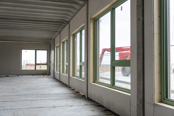 ). Deze elementen worden volledig in de fabriek geproduceerd en afgewerkt, waardoor op de bouwplaats snel en gecontroleerd kan worden gemonteerd. Juist in dit project bleek de kracht van een goede samenwerking in het voortraject: door snel te schakelen in engineering en detaillering kon de late overstap naar HoutAlu-Kozijn