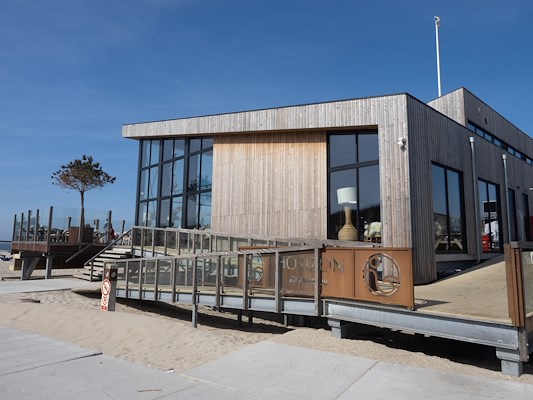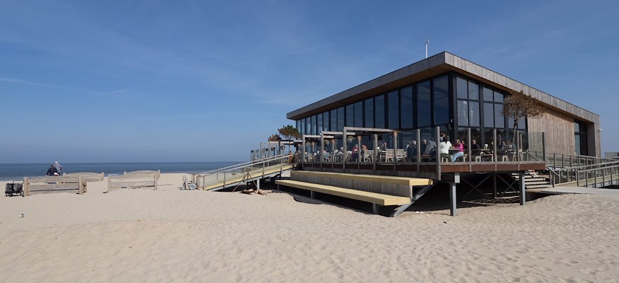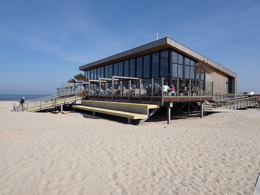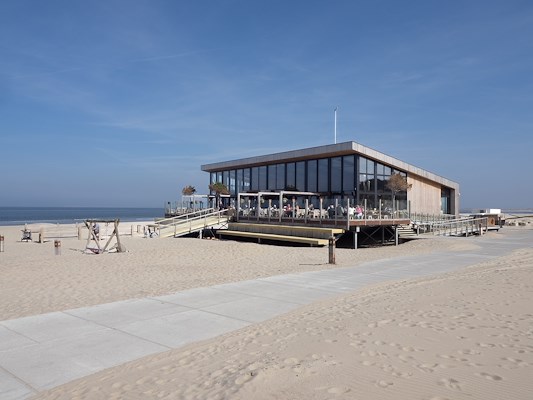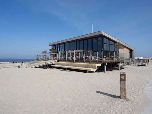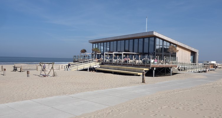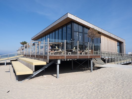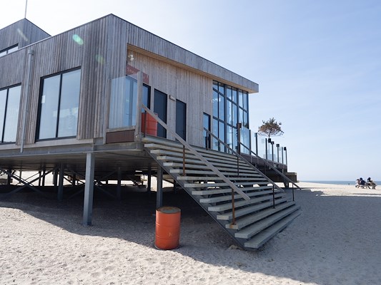De combinatie van een robuuste stalen constructie met warme houten gevels zorgt voor een krachtig contrast tussen industrieel en natuurlijk. Het resultaat is een toekomstbestendig paviljoen met een eigentijdse, gastvrije uitstraling, een plek waar bezoekers de komende jaren kunnen genieten van het uitzicht, de zon en de zee.