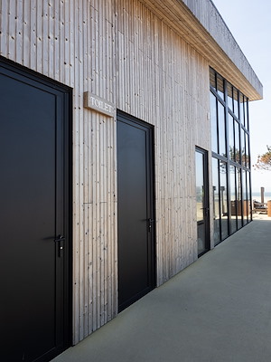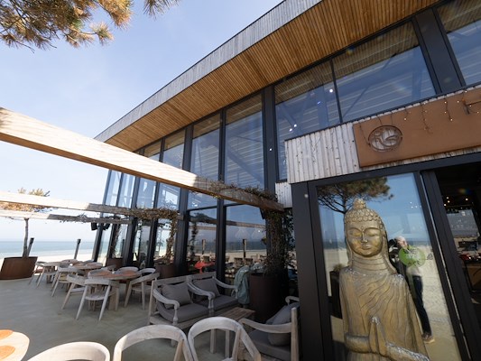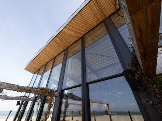 In Renesse verrees binnen slechts zes maanden strandpaviljoen De Horizon, een project dat vakmanschap en efficiëntie perfect combineert. De bouw startte midden in de winter, zodat het paviljoen precies op tijd gereed was voor de start van het strandseizoen. Voor de gevelbekleding is gekozen voor Vuré Noir, een thermisch gemodificeerd hout dat uitermate geschikt is voor de ruige weersomstandigheden aan de kust. Dit duurzame, onderhoudsarme materiaal behoudt zijn vorm en uitstraling, zelfs onder invloed van zout, wind en zon.