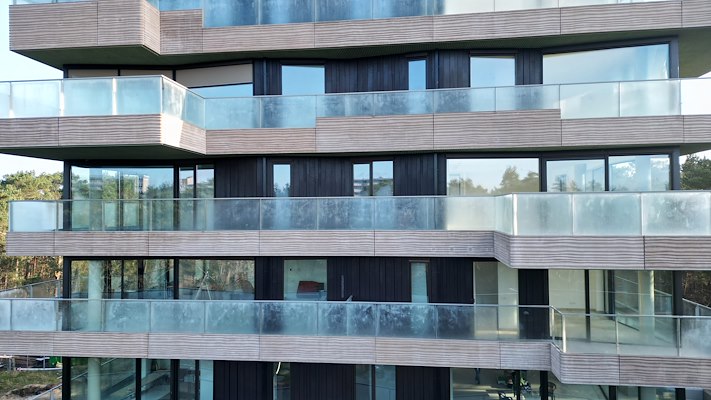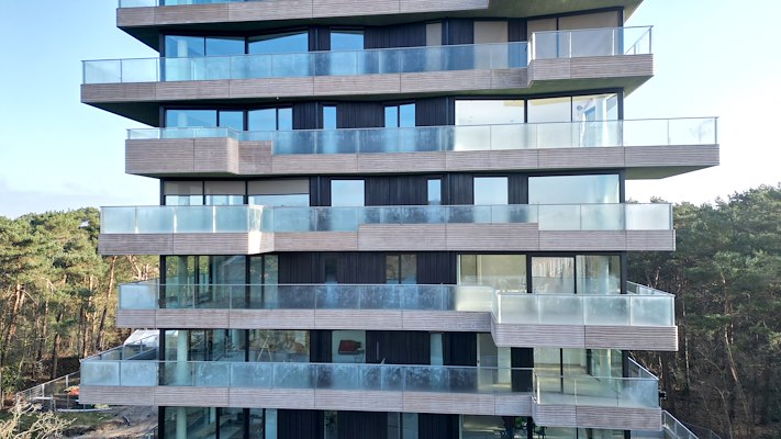 Fraké Noir® is een 100% FSC-gecertificeerde houtsoort, afkomstig uit duurzaam beheerde bossen. Door thermische modificatie beschikt het hout over een hoge natuurlijke duurzaamheidsklasse en is het uitstekend bestand tegen de weersinvloeden van het Nederlandse klimaat. Dit maakt het materiaal bijzonder geschikt voor hoogwaardige geveltoepassingen waarin esthetiek, duurzaamheid en prestaties samenkomen.