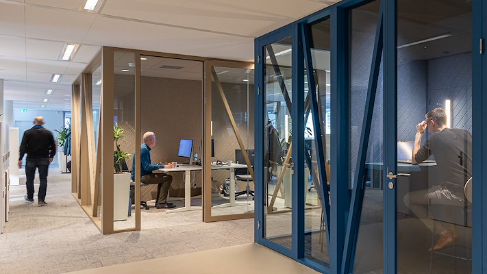 Ook de derde tot en met zesde verdieping zijn volledig vernieuwd en ingericht volgens een hybride werkconcept. In het interieur komt de identiteit van Ballast Nedam duidelijk tot uiting. Het ontwerp is geïnspireerd op een robuuste en eerlijke uitstraling, die de kernwaarden en werkwijze van de organisatie weerspiegelt.
