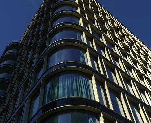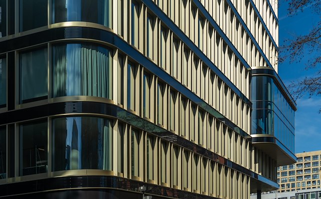De onderbouw is gerenoveerd in de oorspronkelijke zakelijke stijl. In contrast hiermee zijn de torens voorzien van organische rondingen, glazen erkers en andere onregelmatigheden, refererend naar vormentaal van de Amsterdamse School. Dit is uitgewerkt met grote glaspartijen, zwart keramiek en goudkleurig geanodiseerd aluminium. De vele gouden accenten zijn een belangrijk onderdeel van de architectuur en geven het complex een luxe uitstraling.