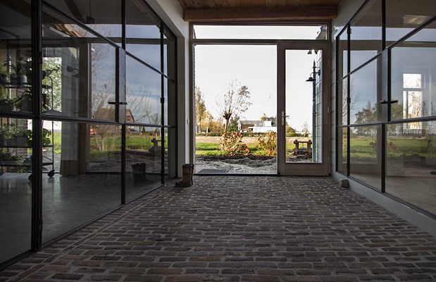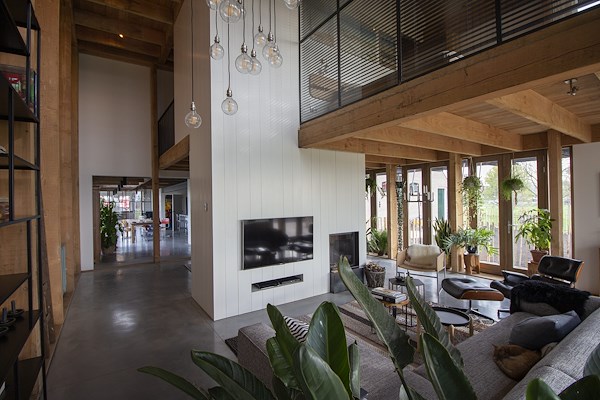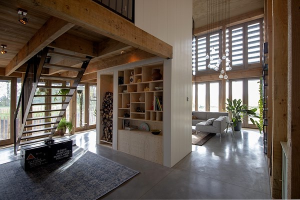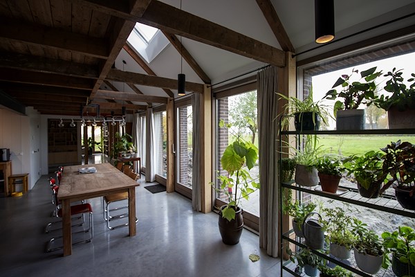 Het ontwerp van de transformatie — van vervallen hooihuisboerderij naar comfortabel woonhuis — verhoud zich nauwkeurig tot de karakteristieken van dit streekeigen gebouwtype. Het arbeiderswoning aan het dorpslint is hersteld naar het originele aanzicht. De ruimtelijkheid van de lange stal is teruggebracht: binnenwanden hadden de ruimte dichtgeslibd en de constructie weggewerkt. Het hooihuis is aan de woning toegevoegd met behoud van zijn karakteristieke hoogte en ruimtewerking. De oorspronkelijke ruimtelijke beleving is weer voelbaar, de houten draagstructuren zijn weer zichtbaar en in hun schoonheid te ervaren.