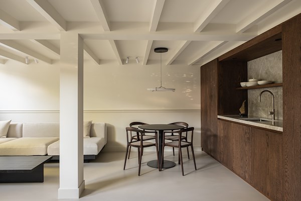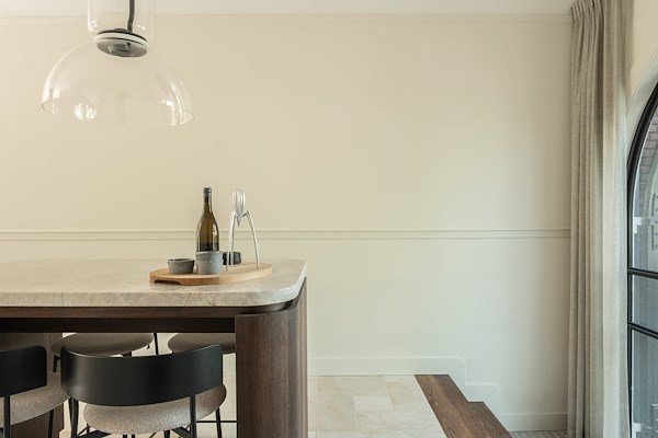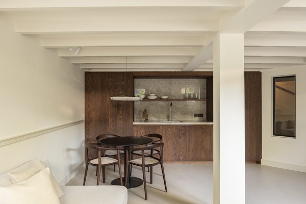 bracht hier verandering in door de ruimte opnieuw te positioneren binnen de woningstructuur. Door subtiele verschuivingen in indeling en zichtlijnen ontstond er een natuurlijke verbinding tussen koken, wonen en dineren.