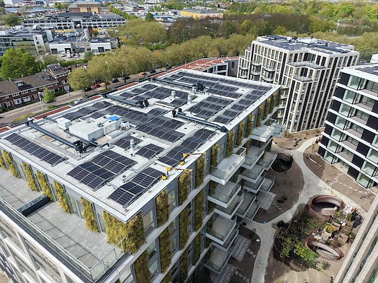 Nicoya, ontworpen door Paul de Ruiter Architects en gerealiseerd in samenwerking met Ballast Nedam, kenmerkt zich door een sterke integratie van groen in de gevels. Dit vraagt om een onderhoudsstrategie die zowel technisch betrouwbaar is als recht doet aan het architectonisch ontwerp.