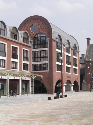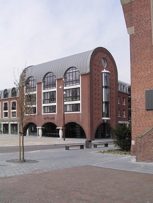 Aan de zijde van het Raadhuisplein richt de bebouwing zich nadrukkelijk op het plein, met een ranke luifelconstructie van staal en glas voor de winkels en gedeeltelijk overdekte terrassen. Aan de Stationsstraat is de bebouwing ingetogener. De bogen van de Raadhuispleinzijde sluiten hier aan op een arcade, die via een passage toegang verschaft tot een publieke hof, met deels ondergrondse parkeergelegenheid.