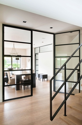 Het renoveren van een jaren 30 woning, waarbij alle hemelwaterafvoeren weer inpandig gemaakt zijn waardoor de dakoverstekken weer in volle glorie zijn teruggekeerd. Alle aluminium kozijnen zijn vervangen door slanke stalen kozijnen, zo gedetailleerd dat de plafonds naadloos overlopen in de dakoverstekken. De orientatie van de woning is verlegd van de weg naar de grote tuin,