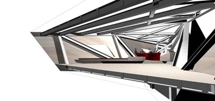 Opvallend aan de ingreep van UN Studio is het scherpe contrast met de bunker. Waar de laatste zich presenteert als een monolithische massa, daar openbaart de hightech toevoeging zich aan de binnenkant als een lichte structuur, waarvan de staalconstructie nog zichtbaar is tussen de houten wandafwerking. De toevoeging lijkt op een vreemd wezen, dat bezit heeft genomen van een moederlichaam. De ruwe verschijning van de ‘host’ steekt prachtig af tegen de gladde huid van de toevoeging.