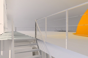 Eén gebouw, één doorsnede, met de drijvers geïntegreerd in de vorm van het gebouw. De vorm bestaat uit stalen boogspanten met een dubbele huid van aluminium. Deze schil wordt benut om alle voorzieningen in onder te brengen, waardoor de ruimte puur en flexibel blijft.