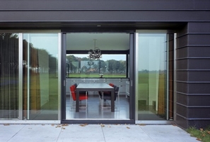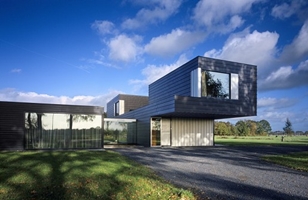 Voor het sculpturale woonhuis in Vriezenveen diende de donkere silhouetten en van de historische boerderijen als belangrijkste inspiratiebron. Ook de organisatie van de kavels in de lengterichting vormde de basis voor dit woonhuis. Net als bij de grote boerderijen is ook hier de eettafel in de grote woonkeuken de spil van het wonen.