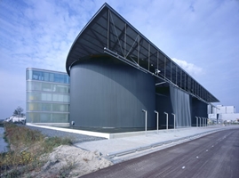 Achter de drie slibgistingstanks bevindt zich het bedrijfsgebouw. Dit gebouw bevat naast de kantoren, het restaurant en de werkplaatsen ook diverse procesfuncties zoals de ruimte waar het slib wordt ontwaterd. Het kantoorgedeelte en de entree zijn door vides in de vloeren ruimtelijk met elkaar verbonden over de volle hoogte van 20 meter.