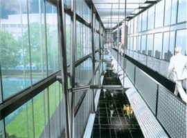Het ‘Shell International Exploration and Production’ laboratorium aan de Volmerlaan te Rijswijk zal in verband met een veranderende visie op werken, in de nabije toekomst overgaan van het ‘cellenkantoor’-principe, met aan de gevel kantoorruimten en in het midden een gang, naar het semi-open-wer kplekken concept, waarbij over de volledige verdie-pingsvloer een vrije indeling kan worden gemaakt. Hierdoor dient het ‘doorgaande verkeer’ van en naar de werkplekken buiten de kantoorverdiepingen te worden gehouden. Door de ‘Mainstreet’ te ontwikkelen wordt dit gerealiseerd. De ‘Mainstreet ‘ is een onderdeel van een totale renovatie van het complex, waarbinnen ook nieuwbouw (kantoren, labora-toria, restaurant) wordt gerealiseerd. De ‘Mainstreet’ is vanuit een toekomstvisie voor het totale complex ontworpen. Deze toekomstvisie speelt tevens in op toekomstige stedenbouw-kundige ontwikkelingen van de Gemeente Rijswijk. De eerste fase is in dit plan vormgegeven. De ‘Mainstreet’ doorsnijdt het totale complex in één beweging en verbindt zo alle belangrijke knooppunten. Gezien de orthogonale structuur van het complex zullen dwarsverbindingen op begane grondniveau, de totale ontsluiting van het complex waarborgen. Alle ondersteunende, representatieve en restauratieve functies zullen aan de ‘Mainstreet’ komen te liggen. De begane grond zal de belangrijkste verkeersstromen verwerken, door op de tweede verdieping in de ‘Mainstreet’ een loopbrug te hangen, behoeft men maar een verdieping te stijgen of te dalen. In het verkeersintensieve knooppunt bij het nieuw te realiseren restaurant wordt op elk niveau loopbruggen gerealiseerd, die ontsloten worden door een nieuw stijgpunt (trap/liften).