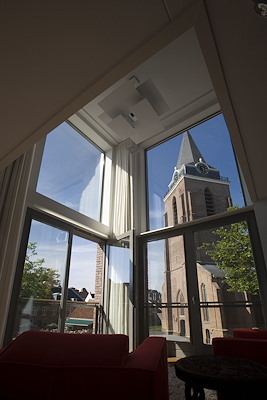 De woningen zijn met hun voordeur en individuele terrassen gelegen aan een groene binnenplaats op nivo 4500+, ontwerp Jelle Bennema. Vanaf deze hof zijn de molen en de kerktoren goed zichtbaar. Kinderen kunnen er veilig spelen.