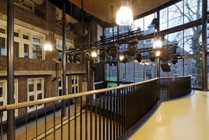 In het complex hangt een intieme sfeer. Het podium contrasteert op respectvolle wijze met de historische gebouwen. De vier verdiepingen, inclusief de volledig geïsoleerde zolderverdieping, van beide gebouwen krijgen een nieuwe inrichting. Met de ruimtes die variëren van oefenruimte tot opnamestudio voldoet het nieuwe centrum aan de fysieke voorwaarden voor het muziekonderwijs.