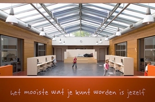 Verbouwing van den bestaande basisschool tot een school voor speciaal basisonderwijs. Na een grondige inventarisatie van de wensen en eisen t.a.v. het soort onderwijs en het gebouw is besloten tot een rigoreuze verbouwing van het oorspronkelijk 'klaslokalengebouw". De uiterlijke structuur van het gebouw is behouden, intern is het gebouw grotendeels gestript en opnieuw opgebouwd en ingedeeld. Centraal is een grote algemene ruimte met daaromheen vier grote unitruimtes. Iedere unit wordt gebruikt door leerlingen die voorheen waren verdeeld over twee groepen/klassen. Iedere unit beschikt over een instructieruimte, een groot leergebied en een gebied met computerwerkplekken. Alle units komen uit op de grote centrale ruimte. Deze ruimte is letterlijk het hart van de nieuwe school.