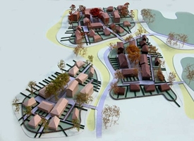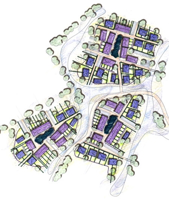 Eerste strategische inzet van het stedenbouwkundige plan is het traceren van de wijkontsluitingsweg. Om de individualiteit van de woonenclaves te versterken is binnen het bestemmingsplan gekozen voor een lijn die los van de donken in het open, lager gelegen tussengebied ligt. Vanuit deze ontsluitingslijn zijn zes toegangswegen naar de donken geïntroduceerd, waarlangs het reliëf in het landschap beleefbaar wordt. De afzonderlijke donken hebben een radiale structuur, waarbij de overgang van binnen naar buiten versterkt wordt door de hoogteverschillen, woningdifferentiatie en inrichting van de openbare ruimte. De toegangswegen leiden de donk op tot aan het hoogste deel en verdelen zich daar naar de lagere gedeelten. Binnen de afzonderlijke donken zijn twee niveaus te onderscheiden. De introductie van de twee niveaus beoogt het totale hoogteverschil van zo’n 1,5 meter te dramatiseren. Het hoogste niveau omvat een centrale ruimte met wanden die bepaald worden door een compacte woonbebouwing. Er ontstaat een relatief besloten open ruimte met een sterke identiteit. Het lagere niveau omvat een ring van lossere woonbebouwing met een individueel karakter. De overgang tussen de twee niveaus wordt gemarkeerd door een 'ossenpad'. De verschillen in identiteit tussen de afzonderlijke donken worden versterkt door onder meer het boomtype dat is gekozen voor de centrale ruimten. Deze boomgroepen bepalen het beeld van de meest prominente plek en vormen een knooppunt van activiteiten en beweging. De stedenbouwkundige opzet van de donk en de architectuur van de woningen zijn in onderlinge samenhang ontwikkeld, zodat het contrast tussen de omsloten centrale ruimte en de meer open buitenruimte versterkt wordt. Naast de plattegronden is het kappenplan van de woningen als ontwerpmiddel ingezet om de ruimtelijke samenhang binnen de donk te versterken. De afzonderlijke donken krijgen een eigen identiteit door subtiele verschillen in architectuur en materiaalgebruik.