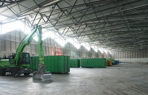 Afvaloverslaghal en personeelsruimte
