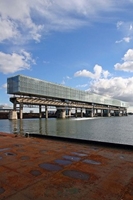 Hoog boven het water van het IJ blinkt een trots kantoorgebouw op een betonnen Kraanspoor. Dreigende wolkenluchten en plotselinge zonneschijn zorgen voortdurend voor een wisselend beeld. De glazen opbouw zweeft middels een ranke staalconstructie drie meter boven zijn basement en kenmerkt zich door een terughoudende vormgeving, waardoor het Kraanspoor als industrieel artefact optimaal tot zijn recht komt. Het verleden vormt een stevige en stabiele basis voor de toekomst van vele creatieve bedrijven.