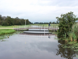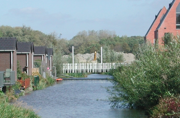 Aan de rand van deze plaat komt als afscherming een overal terugkerende brughek dat kan beantwoorden aan allerlei functies en situaties. De betekenis van deze leuning schuilt niet in de high-tech detaillering maar in het verzoenen van natuur en techniek, immers de essentie van elke polder, zeker die van polder Zestienhoven.