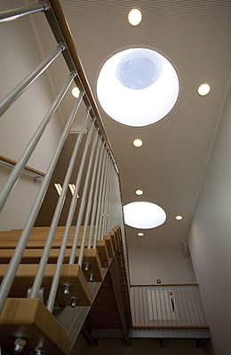 Wijkcentrum Tanthof De vorm van het gebouw van Wijkcentrum Tanthof wordt gekenmerkt door openheid én geslotenheid. Samen met een nog te bouwen blok woningen aan de tegenover-liggende zijde, vormt het gebouw straks een poort voor fietsers en voetgangers naar de wijk het Tanthof. Aan de noordwestzijde volgt het gebouw de bestaande rooilijn. De gevelwand aan de zuidkant loopt schuin weg. Zo ontstaat een nieuwe openbare ruimte, die zicht biedt op de nabijgelegen bibliotheek. Het regenwater wordt via een stalen open goot over de hoofdingang afgevoerd. Het bijzondere metselwerk is uitgevoerd in de Diabolo steen en bestaat uit diagonale patronen. Opvallend zijn de driehoekige ramen en de drie grote raampartijen. De gevel is als het ware als een breiwerk over het volume gedrapeerd. De gebruikers zijn nauw betrokken geweest bij het ontwerp van het interieur en de indeling van de activiteitenruimtes. Deze zijn wel fysiek gescheiden, maar niet ruimtelijk. Het resultaat is een open en compact multifunctioneel wijkcentrum.