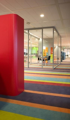 Vloeren: Lifeline (vlak) en Ege (zacht); Brakel (systeemwanden); Blom (interieurbouw); Vitra (kantoormeubels)
