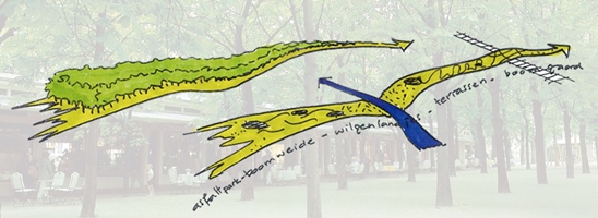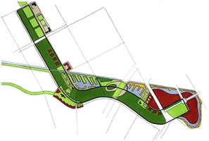 Het ontwerp voor het Cascadepark wordt gekenmerkt door de Groene Slinger. Dit is een element van circa 100 meter breed en bijna 2 kilometer lang. Hier worden bomen geplant met regelmatige plantafstanden, waardoor een groot aaneengesloten bladerdak zal ontstaan en een bijzondere gebruiks- en ontmoetingsruimte voor de omwonenden. De Groene Slinger zal in de loop der tijd functies opnemen. Het eindbeeld is een continue groene gebruiksruimte die een samenhangende omgeving vormt voor de diverse functies. Het programma dat in de Groene Slinger geïntegreerd kan worden bestaat uit sportvoorzieningen, een school-complex, een volkstuinencomplex, kinderboerderij, speelgroen, een aantal woningen langs de randen, een werklocatie en infrastructuur die het park op meerdere plekken doorsnijdt. In het park worden de bomen eerst aangeplant. Het bomengrid biedt een kader voor de ontmoetingen; vervolgens worden de functies toegevoegd. Als de bomen volgroeid zijn kunnen sommigen plaats maken voor functies in het park, zonder dat de samenhang en de sfeer worden verstoord.