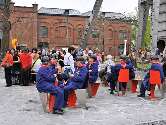 Het plein van C-Mine, gesitueerd op het terrein van een voormalige koolmijn, is de centrale open ruimte van het nieuwe culturele hart van Genk. Het is een stedelijk plein, met een culturele en recreatieve invulling. De voormalige mijngebouwen rond het plein zijn gerenoveerd en hebben diverse bestemmingen van culturele aard gekregen: een theater, bioscoop, restaurants. Ook is er nieuwbouw verrezen: aan de westzijde van het plein staat de Media, Arts & Design Faculty van de Katholieke Hogeschool Limburg. Het pleinontwerp gaat de relatie met de omringende gebouwen aan en voorziet in ruimte voor allerlei geplande en ongeplande activiteiten. De inrichting van het plein biedt ruimte voor spektakel en maakt van C-Mine een bruisend cultureel hart.