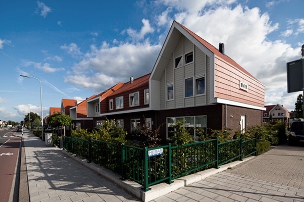 De ontwerpopgave bestond uit 10 twee-onder-één-kap woningen en 11 geschakelde woningen. Het ontwerp van de woningen is geïnspireerd op de woningtypen die het beeld in het dorp bepalen; één laag metselwerk met verschillende oranje kapvormen. Het witte boeideel vormt de scheiding tussen het metselwerk en de dakpannen en loopt als een meanderende lijn door de hele wijk.