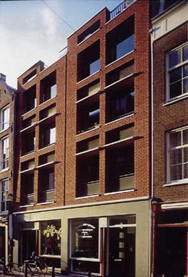 Het "gat" bestond uit 2 voormalige kavels aan de hand waarvan het plan is uitgewerkt. De tuingevel ligt aan een siertuin (Prinsengracht- Keizersgracht) waar geen balkons zijn toegestaan. Achter de gemetselde voorgevel bevind zich een gevel, opgebouwd uit geheel glazen puien, waarvan steeds de helft opengeschoven kan worden. Op het dak bevindt zich een groot gezamelijk dakterras.