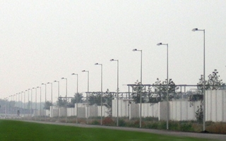 De centrale as van het terrein bestaat uit een asfaltweg. Aan weerszijden hiervan staan de vergistingtanks. Het overige terrein is bedekt met een halfverharding van kalksteen, toegepast in verschillende fracties. Direct rond de tanks zijn onderhoudspaden gemaakt met een verharding van kalksteen split. Kwetsbare installaties zoals de fakkelinstallatie en andere gevaarlijke objecten worden beschermd door 2,5 ton zware kalksteen keien. Daar waar niet gereden wordt ligt een grove fractie stenen, variërend in grootte van 5 tot 20 cm.